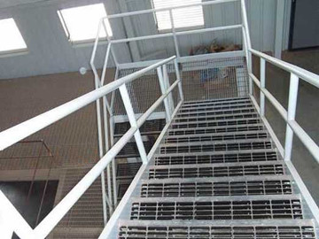 楼梯踏步板是用钢格板外加防滑条和侧板组合而成的深加工产品。主要用于钢梯上作踏步,所以通常称其为楼梯踏步板,简称梯踏板。